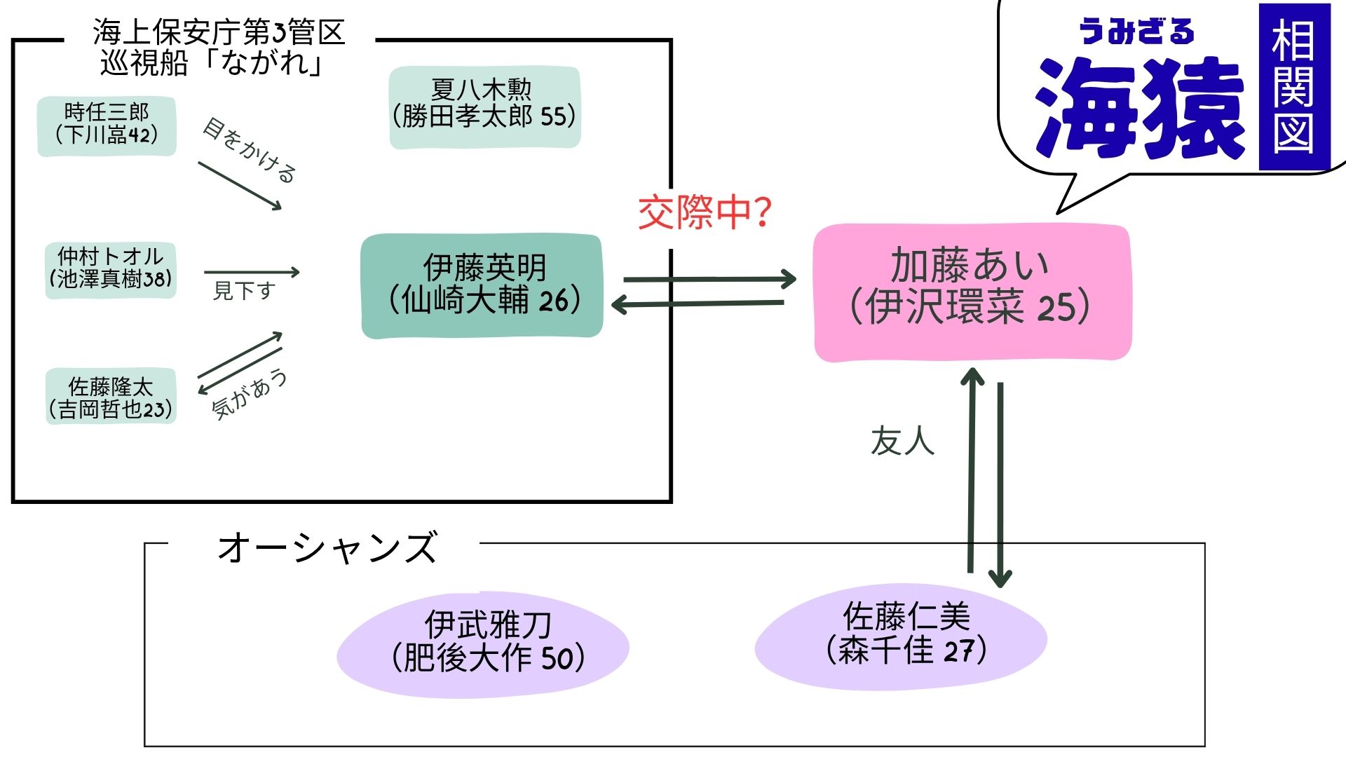 相関図からも分かるように、ドラマ版では仙崎大輔を中心に、様々な人間関係が展開されます。先輩潜水士である池澤真樹は、厳しくも温かい指導で仙崎たちを導く重要な存在です。